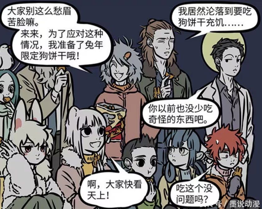 整个东说念主都有点失意,只消哮天是乐天派。哮天似乎准备了好多东西,亦然为了玩忽这种情况,是以他还有兔年截至狗粮饼干。九月、哪吒等东说念主都吃了下去,小玉则是将它丢掉。红孩儿怀疑这东西能否吃下去,杨戬没念念到我方也有吃狗饼干果腹的一天。