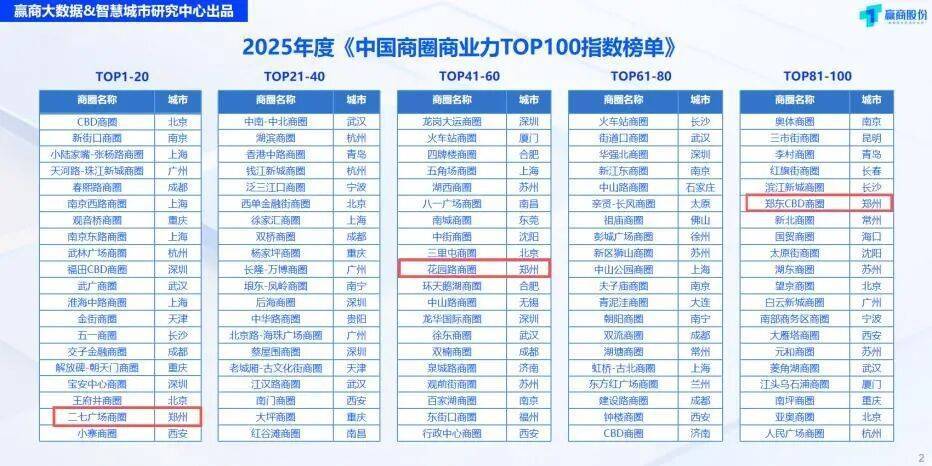 【大河财立方 记者 司高妍 杨霄】中国100个最强的滥用商圈,河南商圈获其三席,二七商圈初度踏进TOP20。近日,赢商股份在深圳发布的《2025年度寰宇商圈营业力指数榜单》(以下简称寰宇商圈百强榜)🦄开云彩票(中国)官方网站,引起国内商界与滥用者热议。