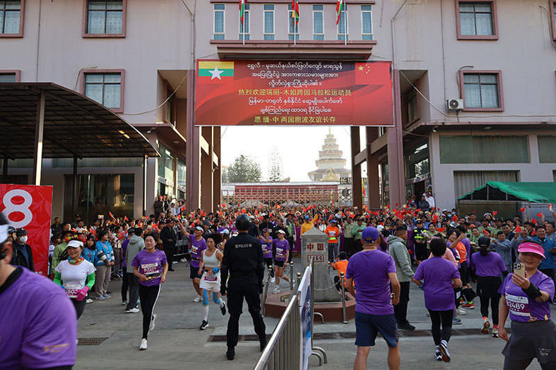 2024年“中缅瑞丽—木姐海外马拉松”选手跑放洋门绕过界桩(府上图)。杨雪梅摄