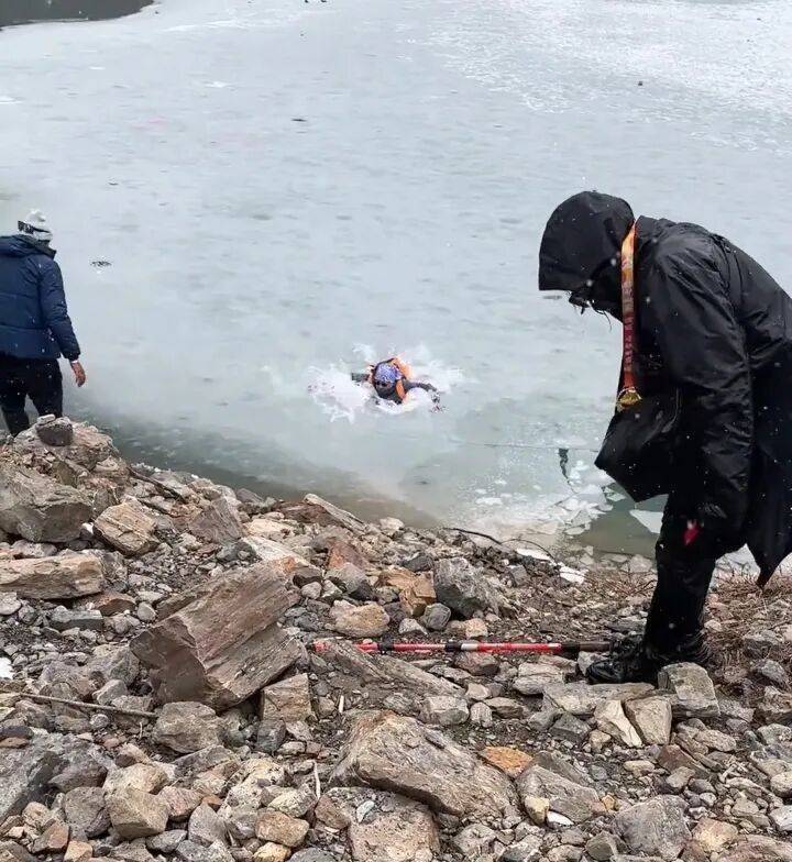现场视频露馅,冰湖内有弘大的冰块,旅客们走上冰块后欲复返岸边,但边际的冰块较薄,至少有4东说念主先后踩破冰块落入湖中。好在此处的湖水看上去不太深,加上岸边有东说念主维护,落水者纷纷上岸。
