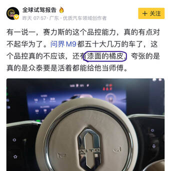 【车主挟恨问界M9标的盘安全气囊盖“橘皮”】准确来说不叫橘皮,应该叫“真皮褶皱”🦄开云彩票(中国)官方网站,从这个图不错判断,问界M9这里用的是真皮。
