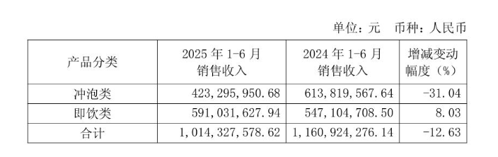 而其冲泡业务方面,上半年商业收入4.23亿元,同比下降31.04%。这一数据或与蹧跶者对茶饮的蹧跶习尚正抓续向即饮、现制等标的转动干系,茶饮蹧跶的抓续变革挤压了冲泡业务的市集空间。