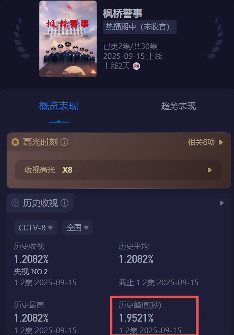 积压四年的刑侦大剧《枫桥警事》,仅播两集,收视峰值破1.9%,不雅众好评如潮,叫好又叫座!