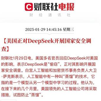 DeepSeek近期激勉了英伟达股价单日暴跌近17%,市值单日挥发超5900亿好意思元,创历史之最!就在刚刚,好意思国运行针对DeepSeek展建国度安全拜谒,这意味着DeepSeek将成为东说念主类历史上AI竞赛的动荡点!鹰眼逻辑以为: