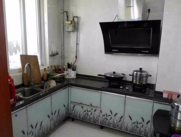 厨房装修,厨房定制的橱柜,橱柜的操作台是玄色的,和白色墙壁对比显著,没作念吊柜,平素婆婆作念饭,才几天厨房就莫得了刚装修好的形势了。